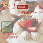 - クリスマスケーキのご案内*クリスマスケーキ予約受付*大変お待たせしました。今年も数量限定で販売いたします。 ■ 予約受付開始12/2(火) 20:00〜公式LINEより12/3(水) 13:00〜18:00(工房OPEN日)※工房にご来店いただ […]