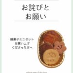 - お詫びとお願い【お詫びとお願い】 12/24〜12/26 小倉井筒屋 新館1F POP UPにて 焼菓子ミニセットをご購入いただいたお客様へ 大切なお知らせです。 本来、見本として展示していた焼菓子が、 誤って販売に混ざってしまってい […]