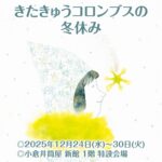 - 2025年12月24日〜30日小倉井筒屋POP UP【POP UP出店のお知らせ】 12月24日(水)〜12月30日(火)「きたきゅうコロンブスの冬休み」小倉井筒屋 新館1F 特設会場上記期間中、1週間のPOP UP出店を行います。 ※12月24日・25日は工房でのクリス […]