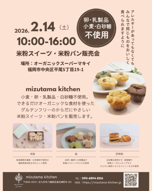【2026年2月】営業日とイベント出店スケジュール|北九州のグルテンフリー・ヴィーガンスイーツ mizutama kitchen